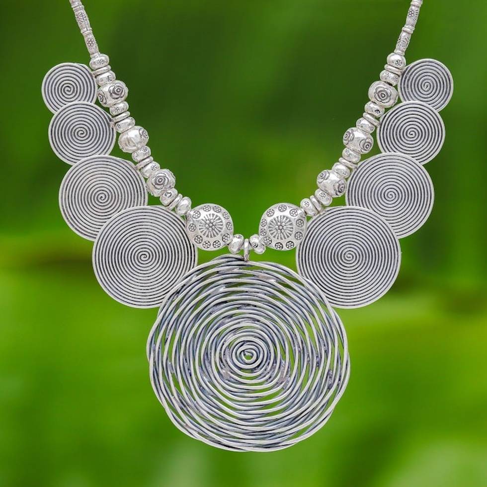 Dramatic Thai Hill Tribe 950 Silver Pendant Necklace 'Mesmerizing Medallion' Item ID: 2669926658