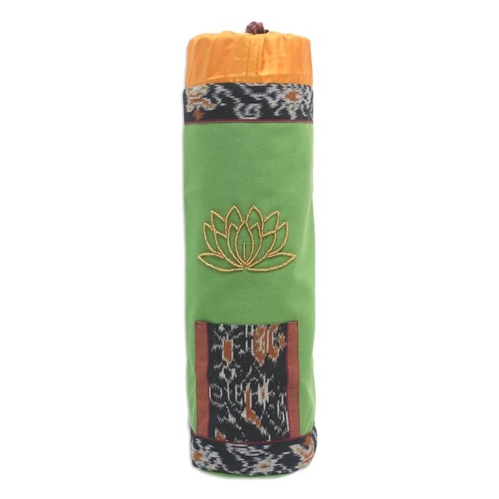 Drawstring Ikat Cotton Yoga Mat Bag 'Petite Golden Lotus' Item ID: 2671747539