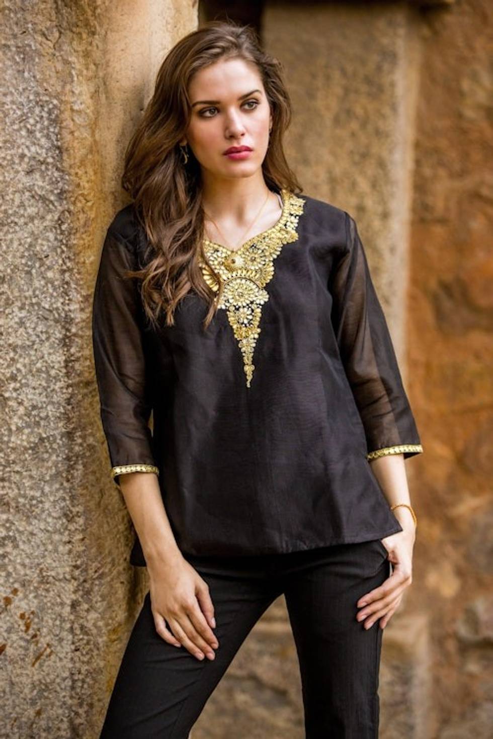 Dressy Black Beaded and Embroidered Cotton and Silk Tunic 'Midnight Princess' Item ID: 2669892302