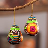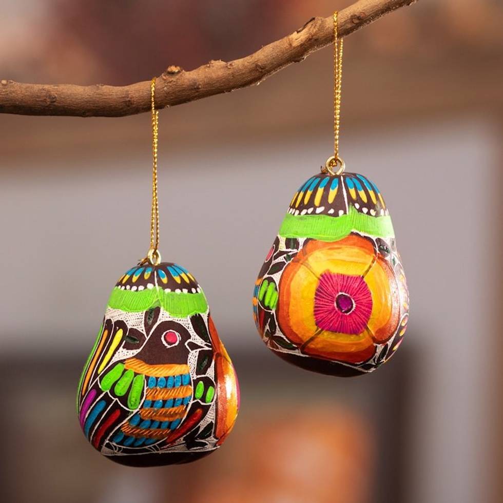 Dried Gourd Ornaments with Bird and Floral Motifs Pair 'Andean Wings' Item ID: 2671820245
