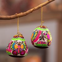 Dried Gourd Ornaments with Colorful Butterfly Motifs Pair 'Vibrant Hope' Item ID: 2669907599