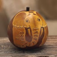 Dried Gourd with Burned Image of an Elephant from Peru 'Earth Tone Elephant' Item ID: 2671695334