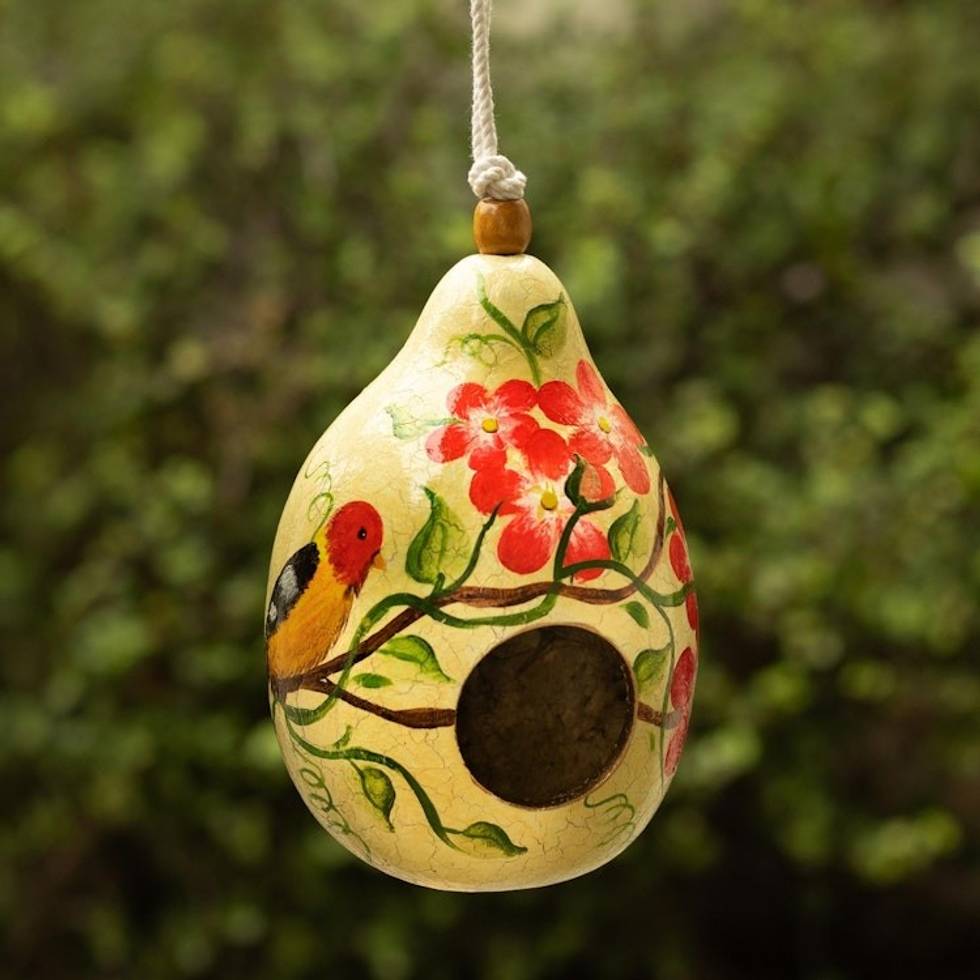 Such beautiful colors on this gourd birdhouse. I can't wait for the birds to find their new nesting home!