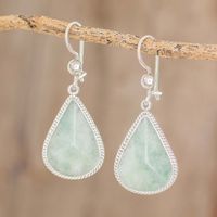 Drop-Shaped Apple Green Jade Dangle Earrings from Guatemala 'Apple Green Dimensional Drops' Item ID: 2671626651