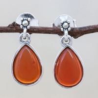 Drop-Shaped Carnelian Dangle Earrings from Thailand 'Droplet Gleam' Item ID: 2669925715