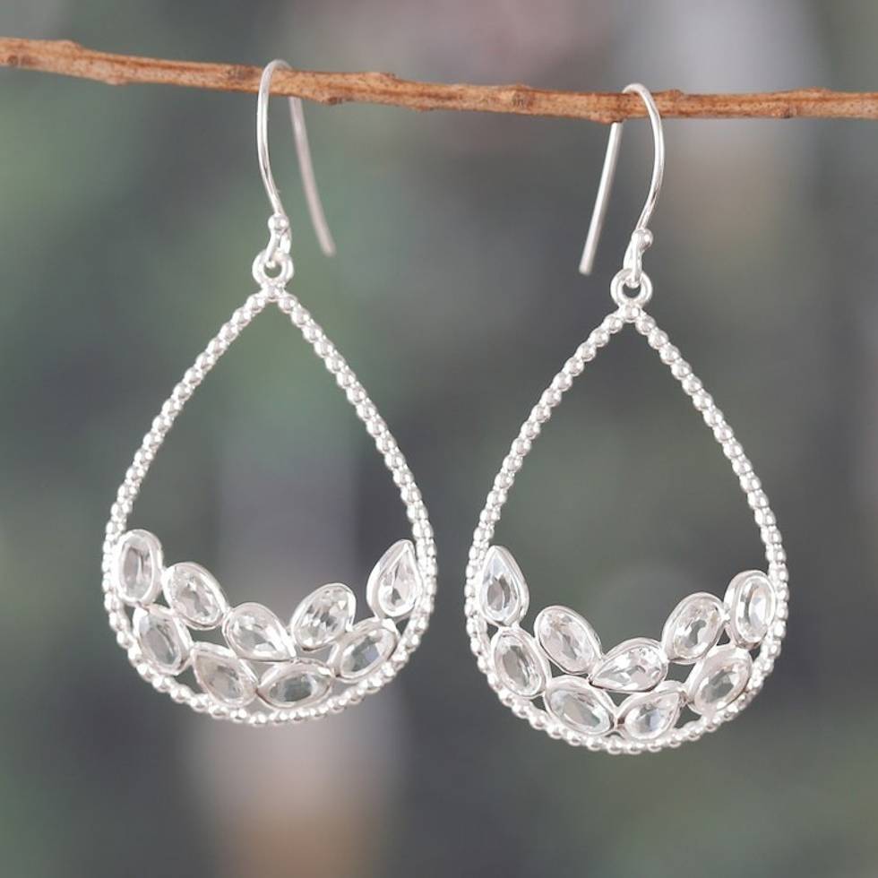 Drop-Shaped Clear Quartz Sterling Silver Dangle Earrings 'Sparkling Drop' Item ID: 2671781584