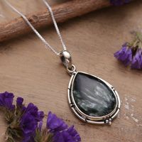 Drop-Shaped Natural Seraphinite Cabochon Pendant Necklace 'Vitality Drop' Item ID: 2671622289