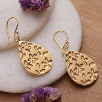Drop-Shaped Spring-Themed Polished Brass Dangle Earrings 'Primaveral Rain' Item ID: 2671781333