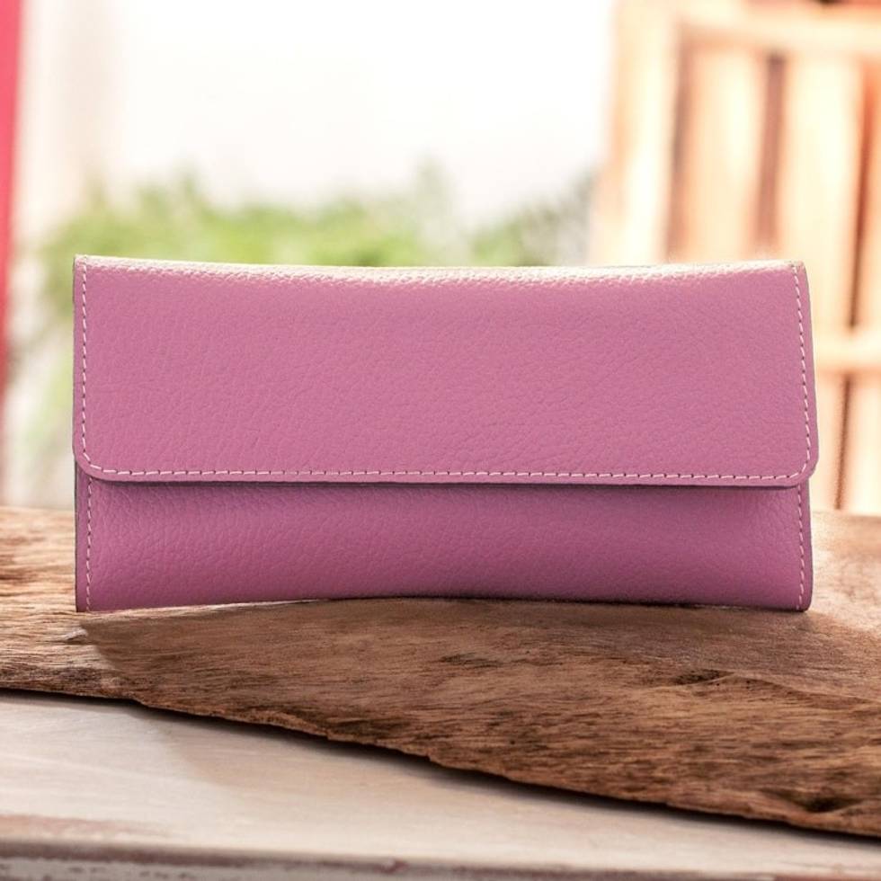 Dusty Rose Leather Tri Fold Wallet With Snap Closure 'Salvadoran Mauve' Item ID: 2671771749