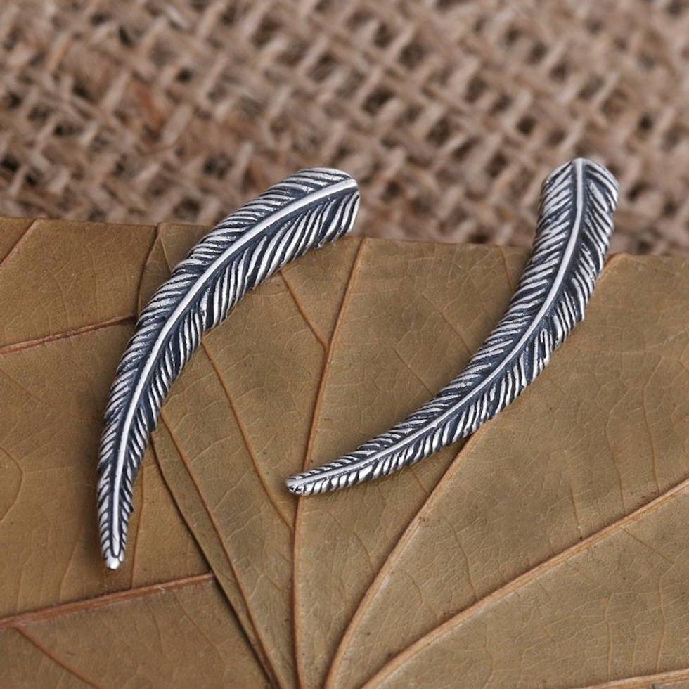 Ear Climber Earrings in Sterling Silver 'Coconut Leaf' Item ID: 2671477354