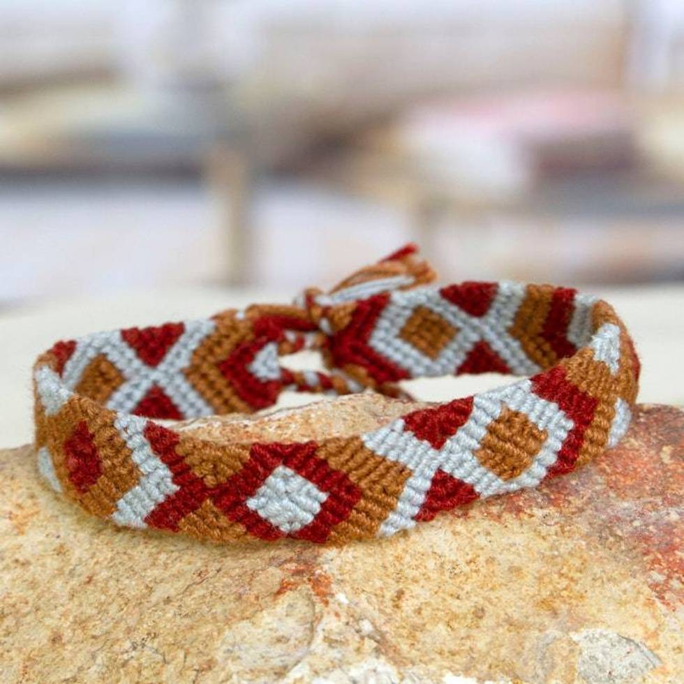 Earth-Tone Cotton Macrame Wristband Bracelet from Mexico 'Earthen Oasis' Item ID: 2676646752