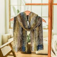 Earth-Tone Rayon Chenille Scarf from Guatemala 'Paths' Item ID: 2669933937