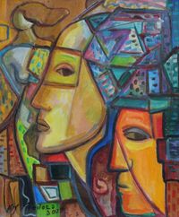 "Van Gogh, Picasso and Matisse are my huge inspirations. You can notice their Cubist influence in my work. You can also see van Gogh's influence in my use of emotional color. I frequently approach the theme of interpersonal relations, often between women. Women fascinate me with their beauty and mystery. I like to bring this beauty, mystery and interest to my canvases, often rife with human conflict and emotion."