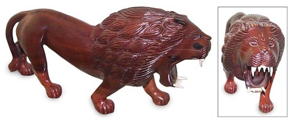 Ebony statuette 'Raging Sahelian Lion' Item ID: 2669888588