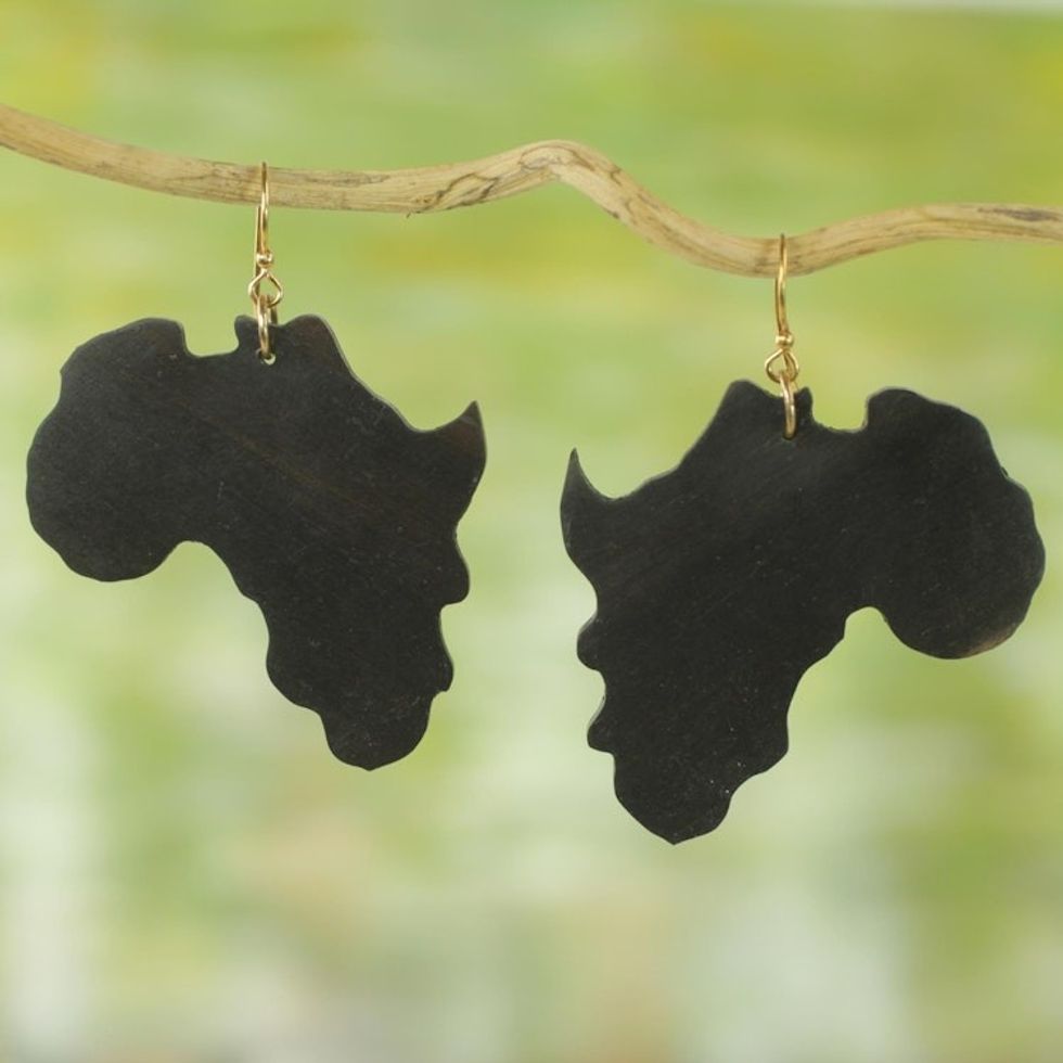 Ebony Wood Africa-Shaped Dangle Earrings from Ghana 'Being African' Item ID: 2671803785