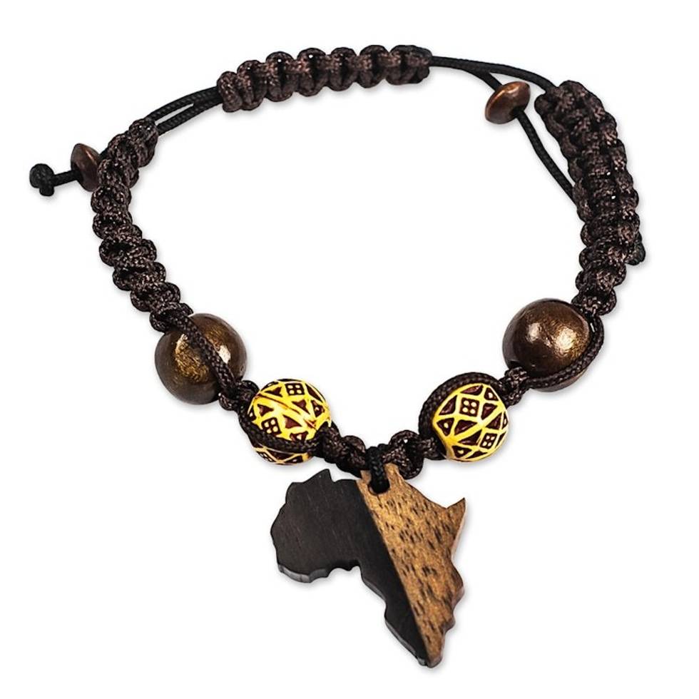 Ebony Wood and Recycled Glass Bead Bracelet 'African Day' Item ID: 2671806466
