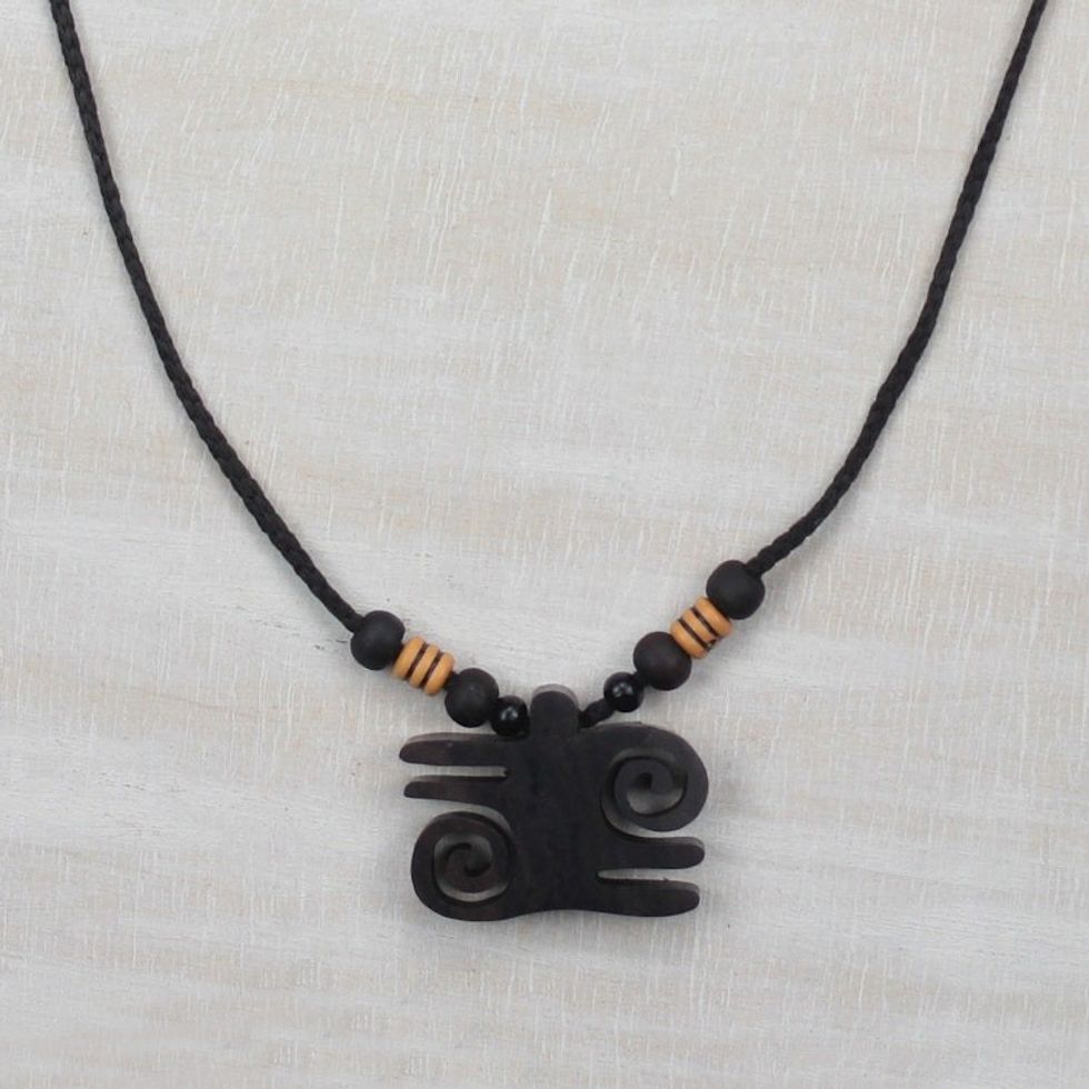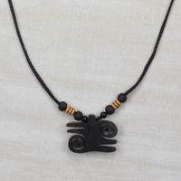 Ebony Wood and Recycled Plastic Adinkra Necklace from Ghana 'Kwatakye Atiko Curls' Item ID: 2671806321