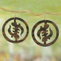 Ebony Wood Circular Adinkra Dangle Earrings from Ghana 'Round Gye Nyame' Item ID: 2671803812