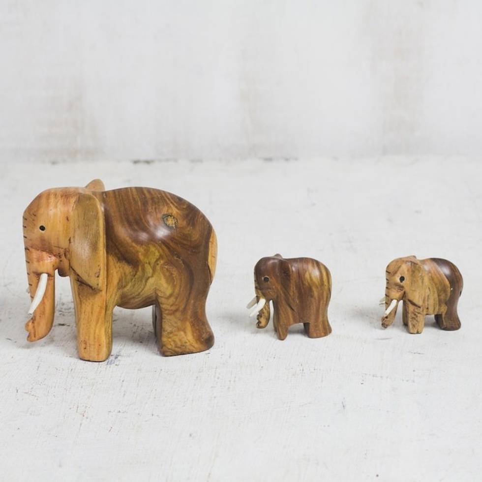 Ebony Wood Elephant Figurines from Ghana Set of 3 'Leading Mother' Item ID: 2671806314