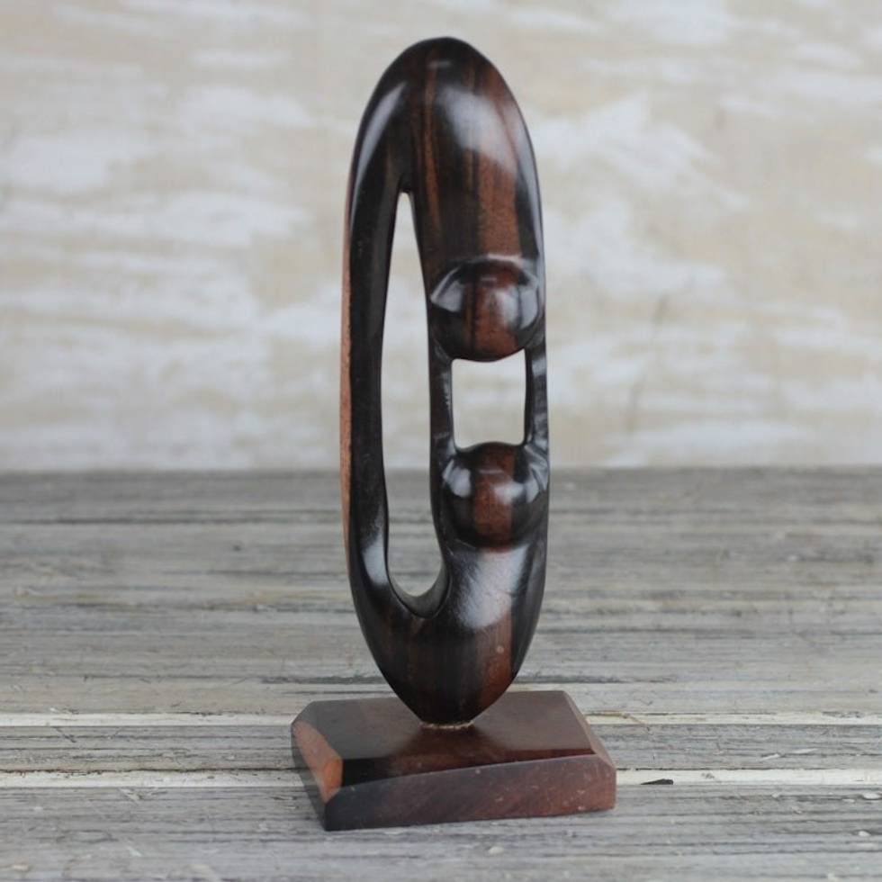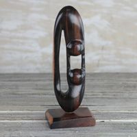 Ebony Wood Hand Carved Sculpture of Two Figures from Ghana 'Balance and Strength' Item ID: 2671816214