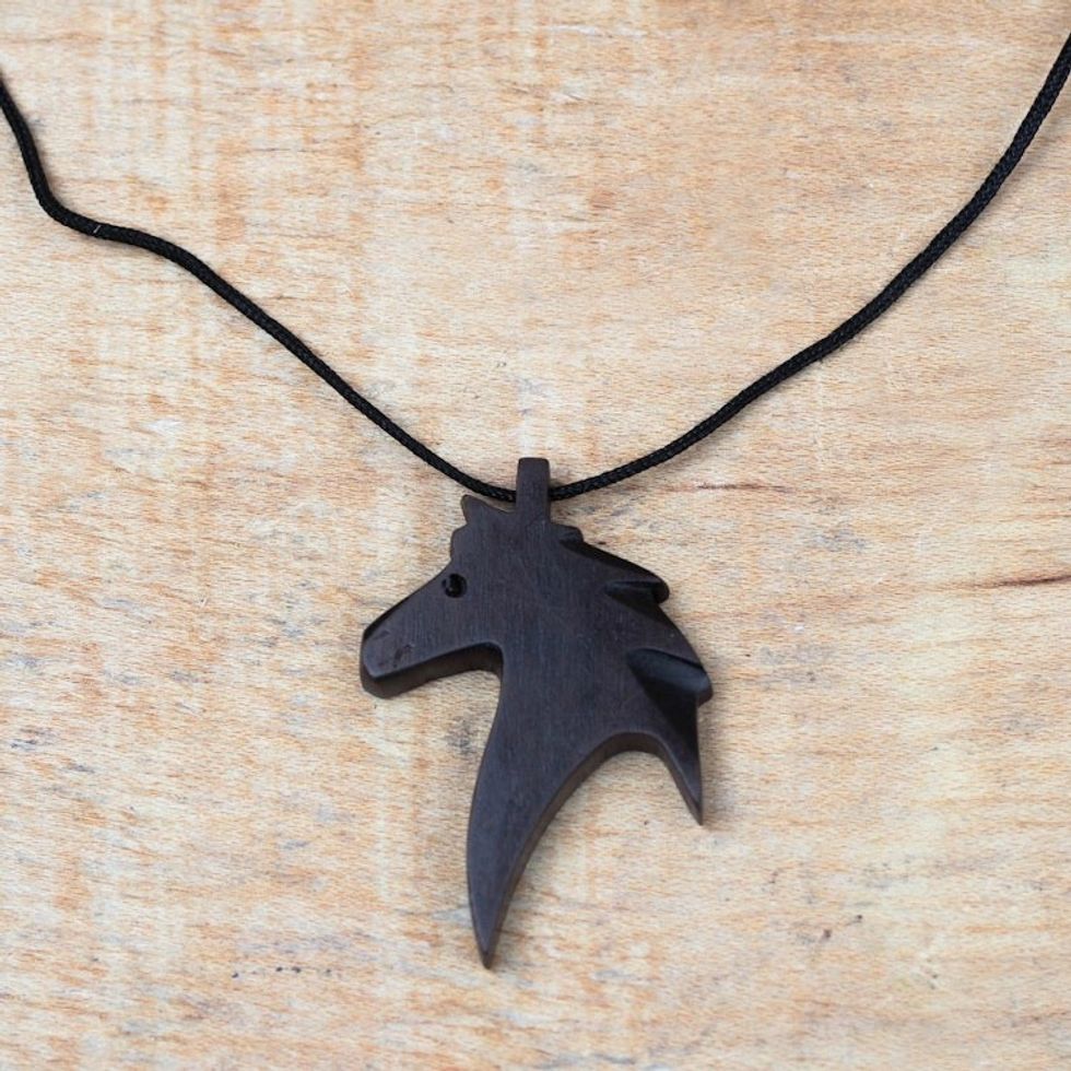 Ebony Wood Horse Pendant Necklace from Ghana 'Horse Profile' Item ID: 2671806405