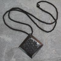 The intricately carved pendant is beautifully distinctive, a unique and welcome addition to any jewelry collection