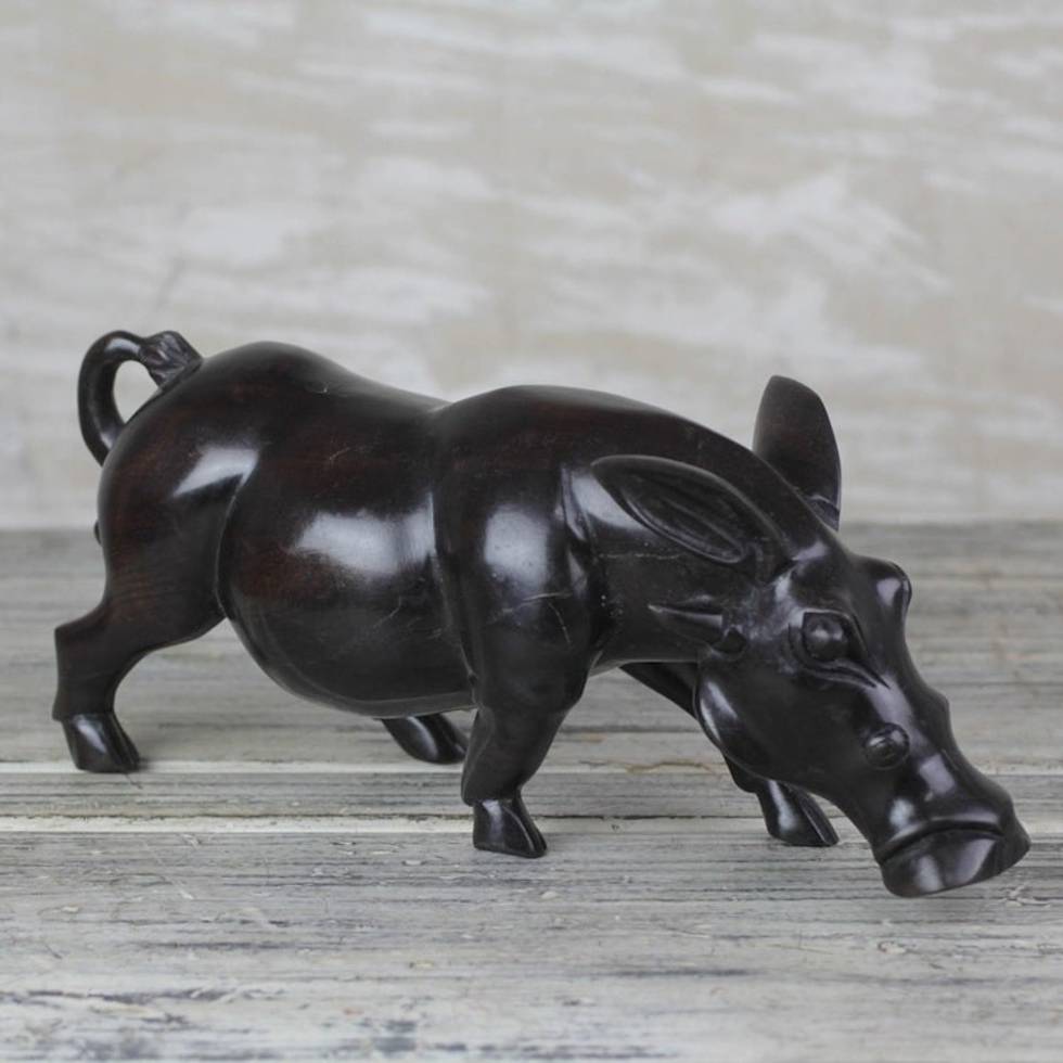 Ebony Wood Pig Sculpture from Ghana 'Bush Pig' Item ID: 2671806507