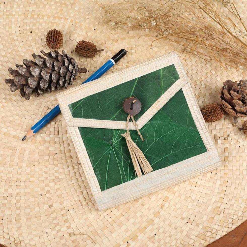 Eco-Friendly 35-Page Natural Fiber Notebook in Green 'My Green Journey' Item ID: 2676662408