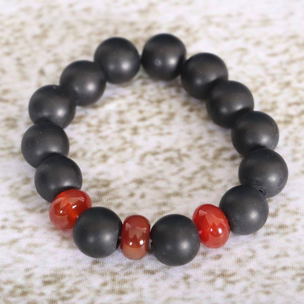 Eco-Friendly Agate Recycled Glass Beaded Stretch Bracelet 'Odo Yewu' Item ID: 2671804142