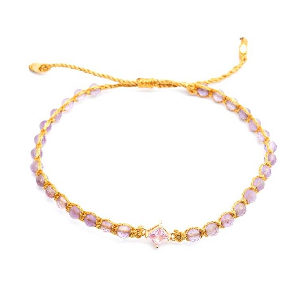 Eco-Friendly Amethyst and Recycled Glass Pendant Bracelet 'Be Wise' Item ID: 2676656692