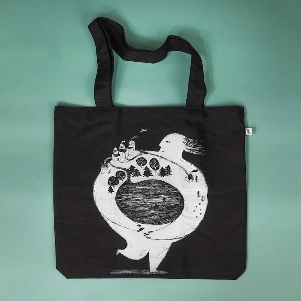 Eco-Friendly Armenian Winter-Themed Black Cotton Tote Bag 'Armenian Winter' Item ID: 2671768774