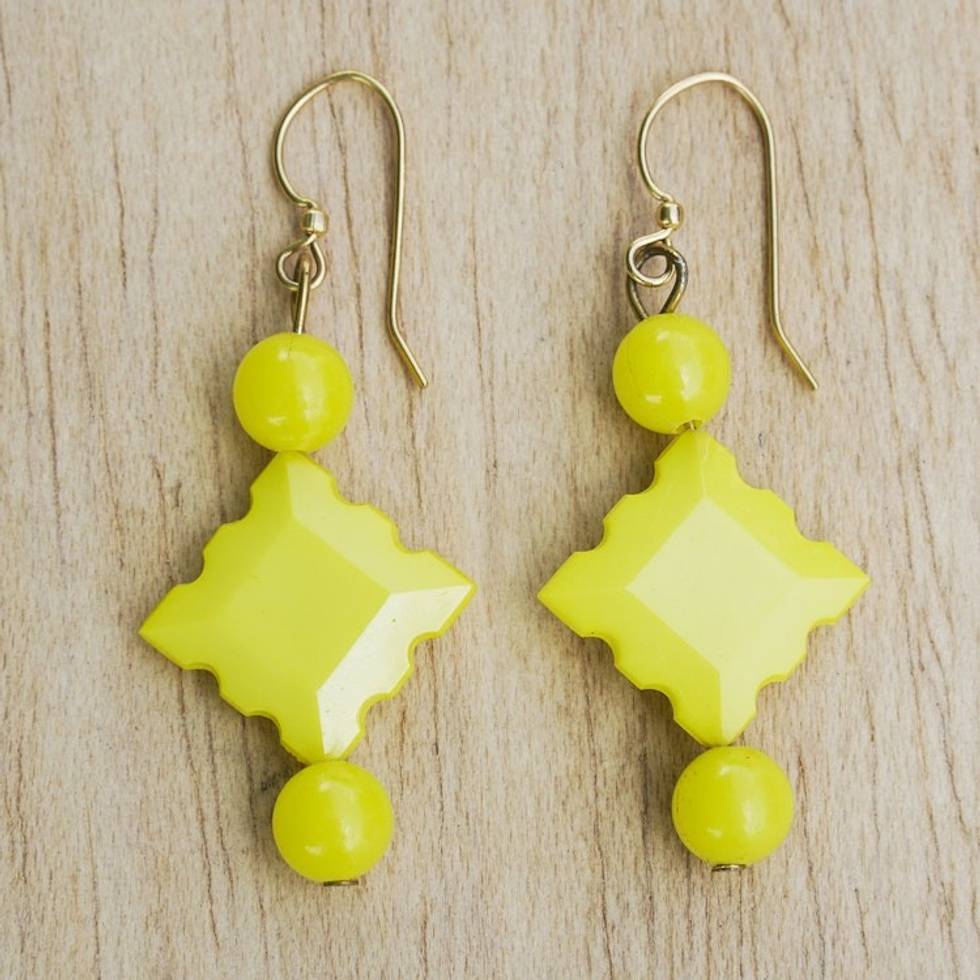Eco-Friendly Beaded Dangle Earrings from Ghana 'Sunshine Grace' Item ID: 2671804165