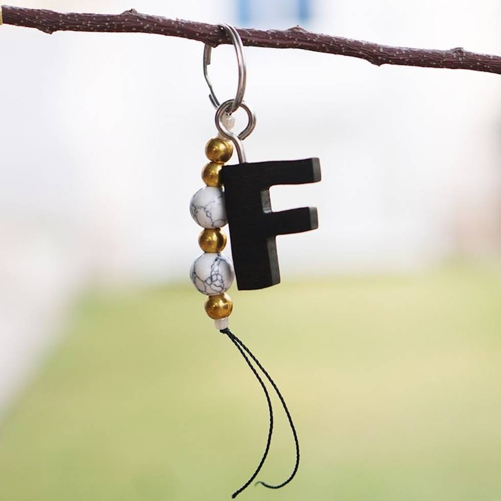 Eco-Friendly Beaded Ebony Wood Keychain with a Letter F 'The Letter F' Item ID: 2671803961