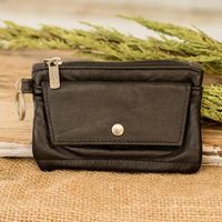 Eco-Friendly Black Recycled Leather Coin Purse with Zipper 'Frugal Space' Item ID: 2671768857
