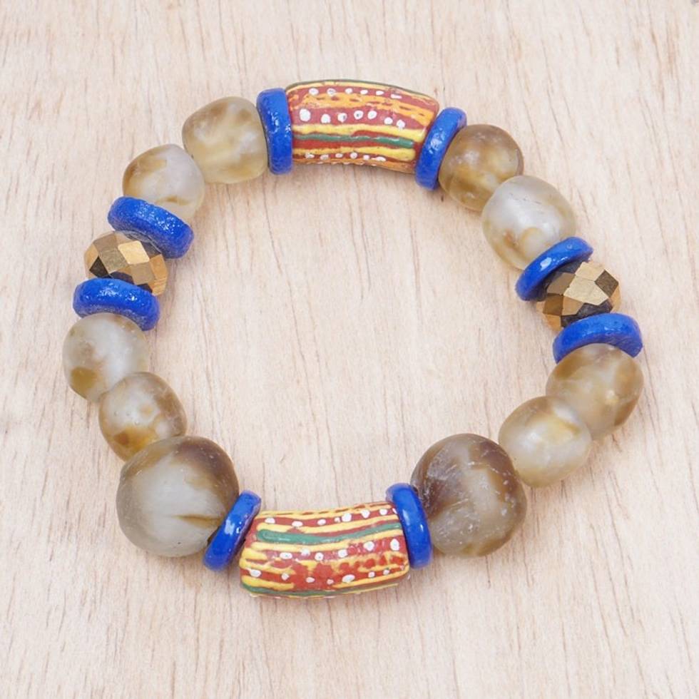 Eco-Friendly Blue and Red Recycled Glass Beaded Bracelet 'Aseda in Winter' Item ID: 2671804126
