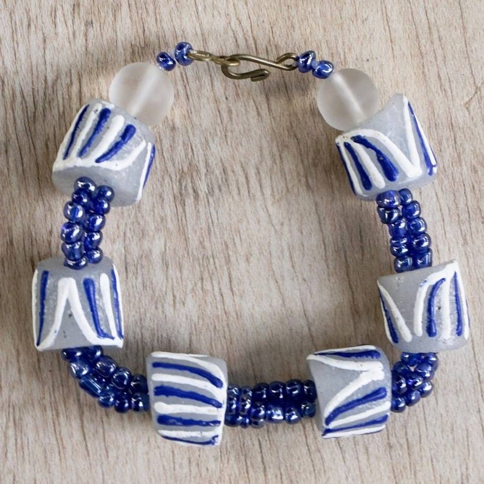 Eco-Friendly Blue and White Beaded Bracelet 'Time Capsule' Item ID: 2671805488