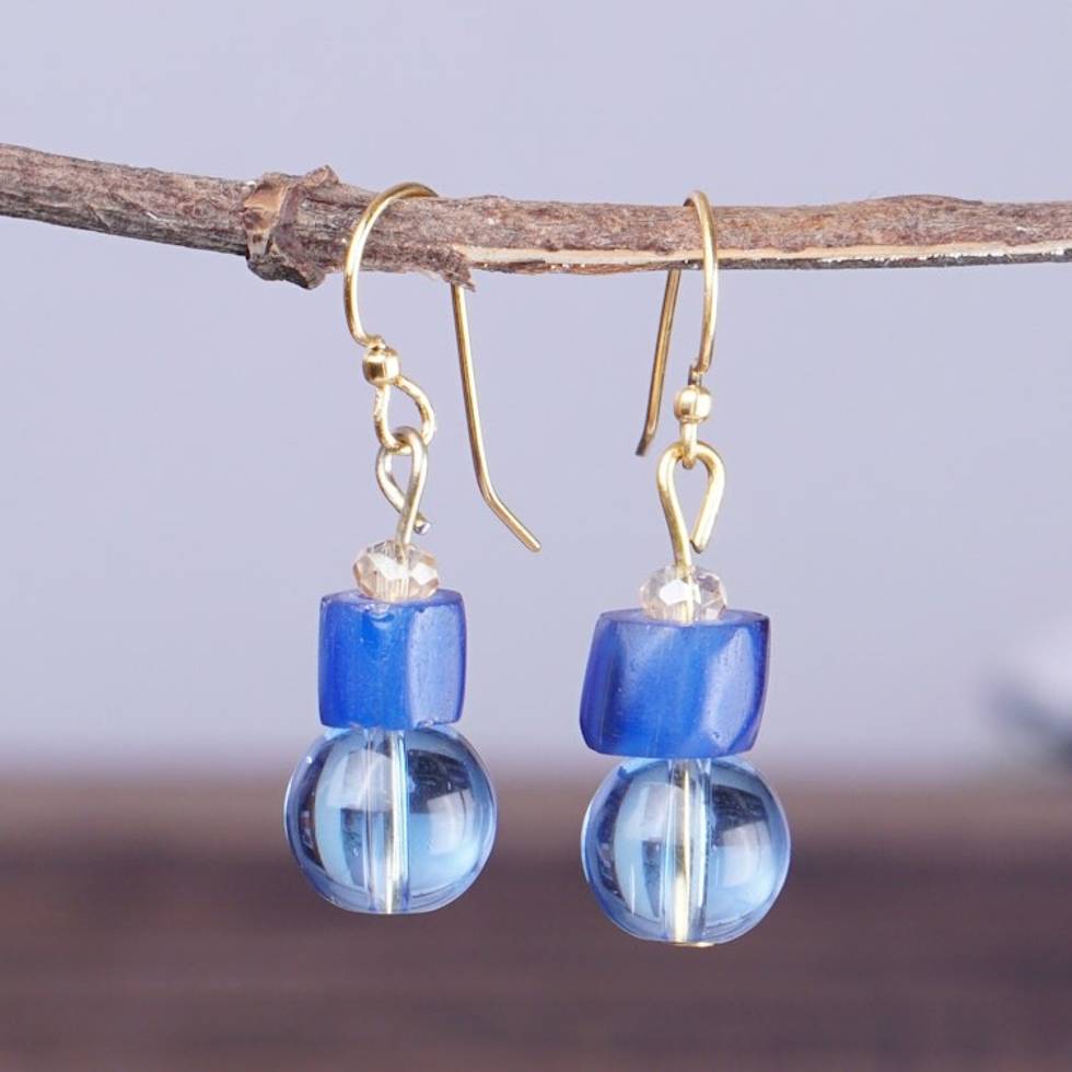 Eco-Friendly Blue Recycled Glass Beaded Dangle Earrings 'Adiagba in Blue' Item ID: 2671805395