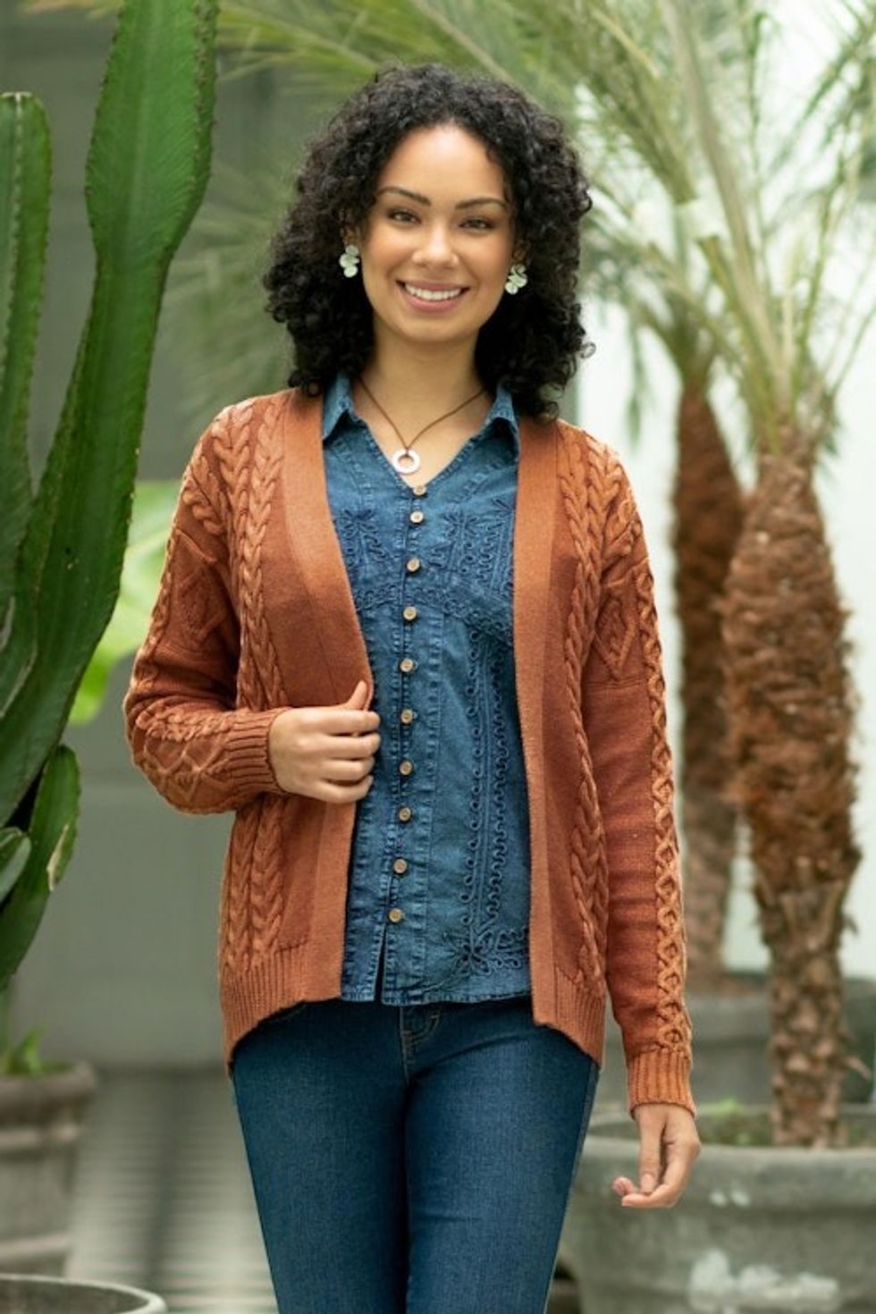 Eco Friendly Cable Knit Open Front Deep Orange Cardigan 'Ginger Cable Classic' Item ID: 2669904224