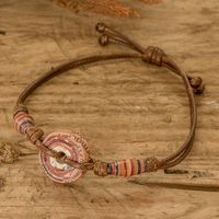 "Veronica Lemus's newest creation calls for environmental awareness in a stylish way. Crafted in El Salvador, this pendant bracelet features an adjustable length thanks to its flexible waxed nylon structure in a dapper coffee hue. As an eco-friendly touch, recycled paper accents decorate the front while adding a vibrant color combination."