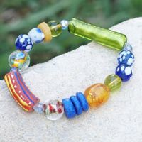 Eco-Friendly Colorful Glass and Plastic Beaded Bracelet 'Surprise Shades' Item ID: 2671803983