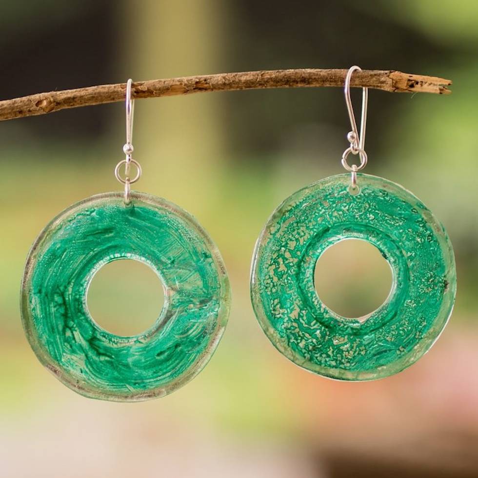 Eco-Friendly Disc-Shaped Green Recycled CD Dangle Earrings 'Green Cycles' Item ID: 2671769622