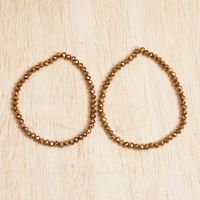 Eco-Friendly Golden Recycled Glass Beaded Anklets Pair 'Victorious Glamour' Item ID: 2671805473