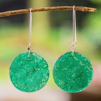 Eco-Friendly Green Round Recycled CD Dangle Earrings 'Green Moon' Item ID: 2671625929