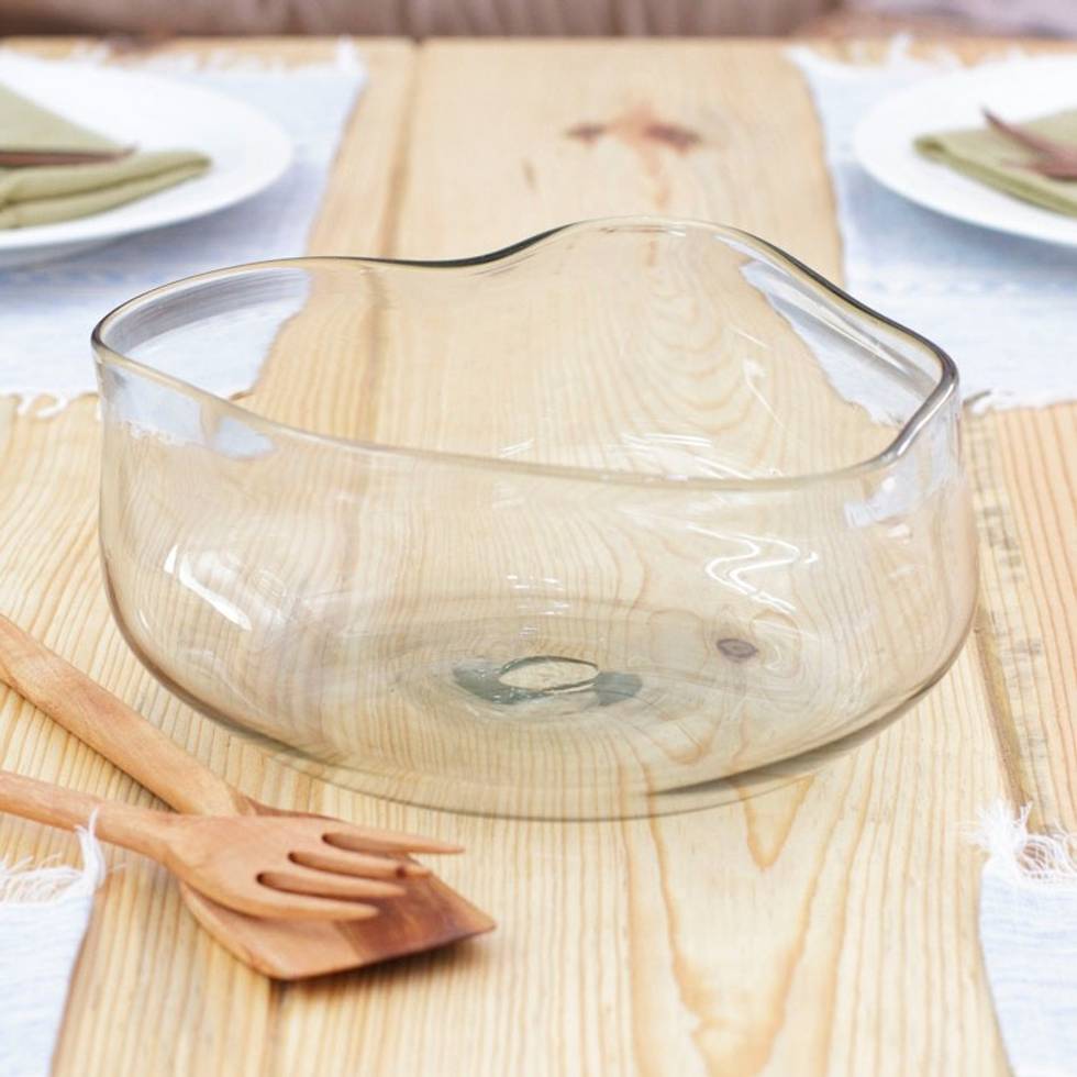 Eco-Friendly Handblown Glass Salad Bowl from Mexico 'Ethereal Delicacies' Item ID: 2671807884