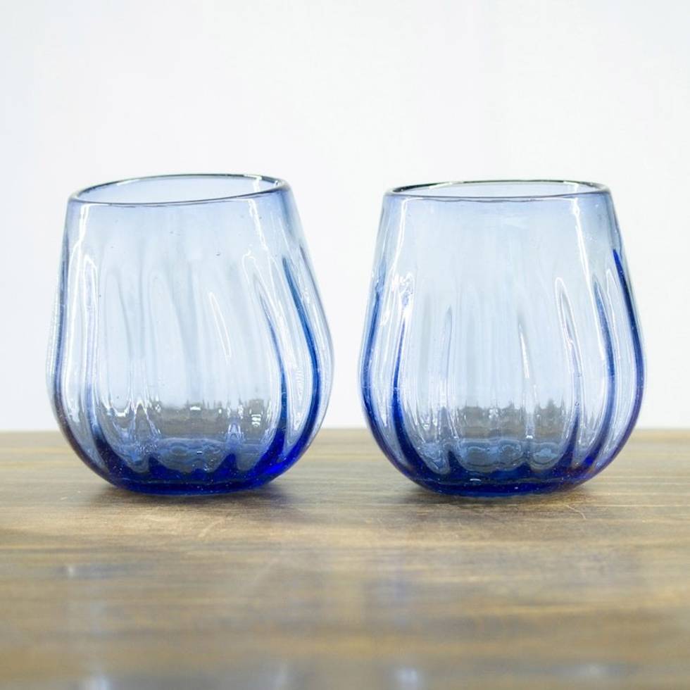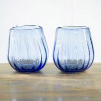 Eco-Friendly Handblown Stemless Wine Glasses Pair 'Refreshing Indigo' Item ID: 2671640393
