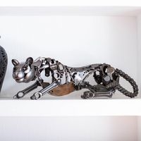 Eco Friendly Mexican Recycled Auto Part Panther Sculpture 'Fierce Panther' Item ID: 2671808609