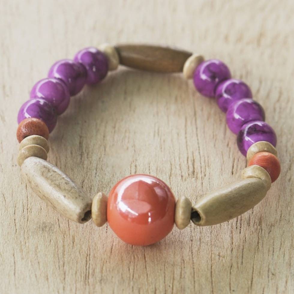 Eco-Friendly Purple Beaded Bracelet from Ghana 'Strong Heart' Item ID: 2671805264