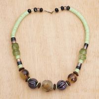 Eco-Friendly Recycled Glass and Wood Beaded Necklace 'Omanye in Green' Item ID: 2671805173