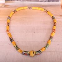 Eco-Friendly Recycled Glass Beaded Long Necklace in Yellow 'Lively Look' Item ID: 2671804491