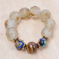Eco-Friendly Recycled Glass Beaded Stretch Bracelet 'Ghana's Grandeur' Item ID: 2671804037